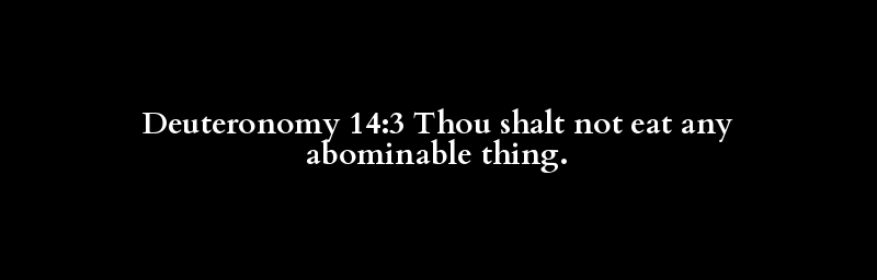Deuteronomy 14:3 Thou shalt not eat any abominable thing.
