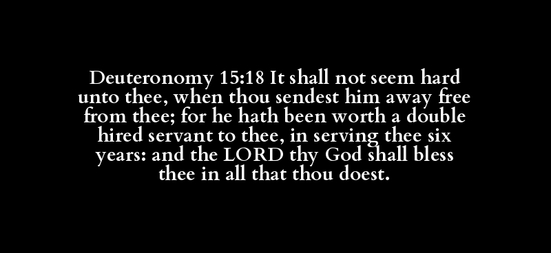 Deuteronomy 15:18 It shall not seem hard unto thee, when thou sendest him away free from thee; for he hath been worth a double hired servant to thee, in serving thee six years: and the LORD thy God shall bless thee in all that thou doest.