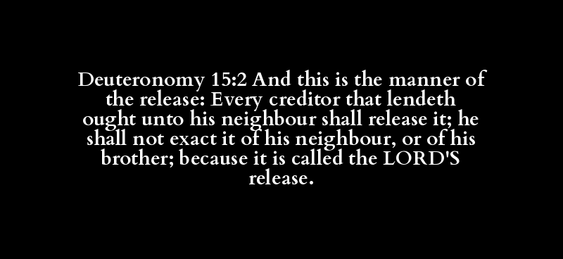 Deuteronomy 15:2 And this is the manner of the release: Every creditor that lendeth ought unto his neighbour shall release it; he shall not exact it of his neighbour, or of his brother; because it is called the LORD'S release.
