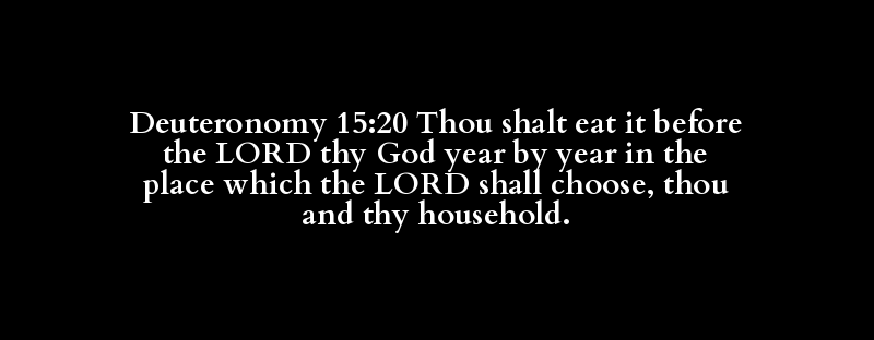 Deuteronomy 15:20 Thou shalt eat it before the LORD thy God year by year in the place which the LORD shall choose, thou and thy household.