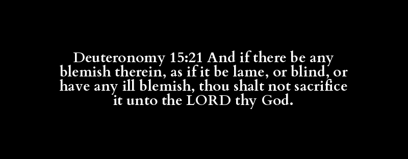 Deuteronomy 15:21 And if there be any blemish therein, as if it be lame, or blind, or have any ill blemish, thou shalt not sacrifice it unto the LORD thy God.