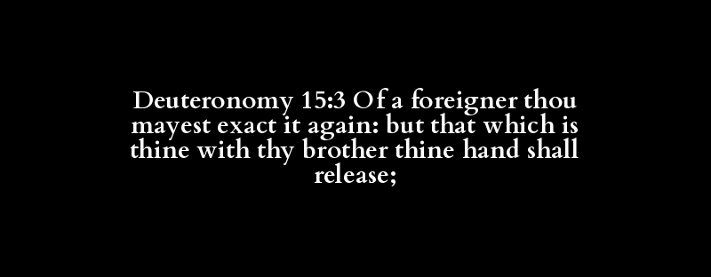 Deuteronomy 15:3 Of a foreigner thou mayest exact it again: but that which is thine with thy brother thine hand shall release;
