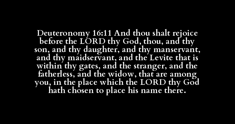 Deuteronomy 16:11 And thou shalt rejoice before the LORD thy God, thou, and thy son, and thy daughter, and thy manservant, and thy maidservant, and the Levite that is within thy gates, and the stranger, and the fatherless, and the widow, that are among you, in the place which the LORD thy God hath chosen to place his name there.