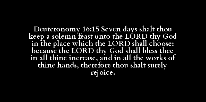 Deuteronomy 16:15 Seven days shalt thou keep a solemn feast unto the LORD thy God in the place which the LORD shall choose: because the LORD thy God shall bless thee in all thine increase, and in all the works of thine hands, therefore thou shalt surely rejoice.