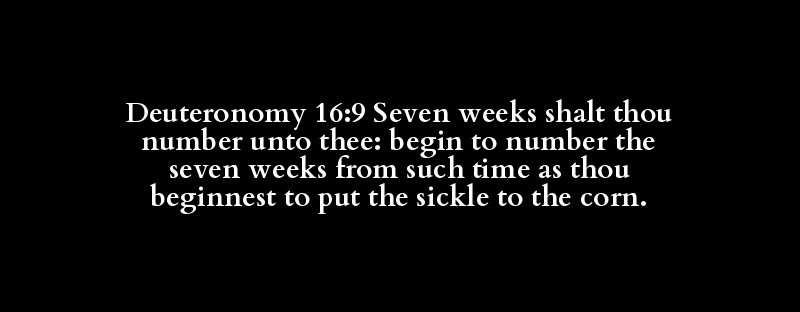 Deuteronomy 16:9 Seven weeks shalt thou number unto thee: begin to number the seven weeks from such time as thou beginnest to put the sickle to the corn.