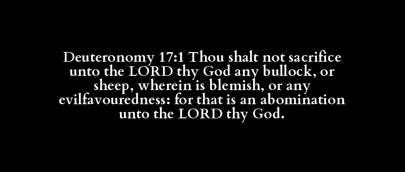 Deuteronomy 17:1 Thou shalt not sacrifice unto the LORD thy God any bullock, or sheep, wherein is blemish, or any evilfavouredness: for that is an abomination unto the LORD thy God.