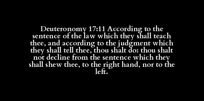 Deuteronomy 17:11 According to the sentence of the law which they shall teach thee, and according to the judgment which they shall tell thee, thou shalt do: thou shalt not decline from the sentence which they shall shew thee, to the right hand, nor to the left.