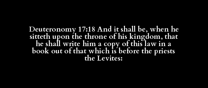 Deuteronomy 17:18 And it shall be, when he sitteth upon the throne of his kingdom, that he shall write him a copy of this law in a book out of that which is before the priests the Levites:
