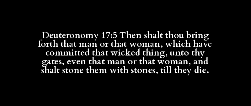 Deuteronomy 17:5 Then shalt thou bring forth that man or that woman, which have committed that wicked thing, unto thy gates, even that man or that woman, and shalt stone them with stones, till they die.