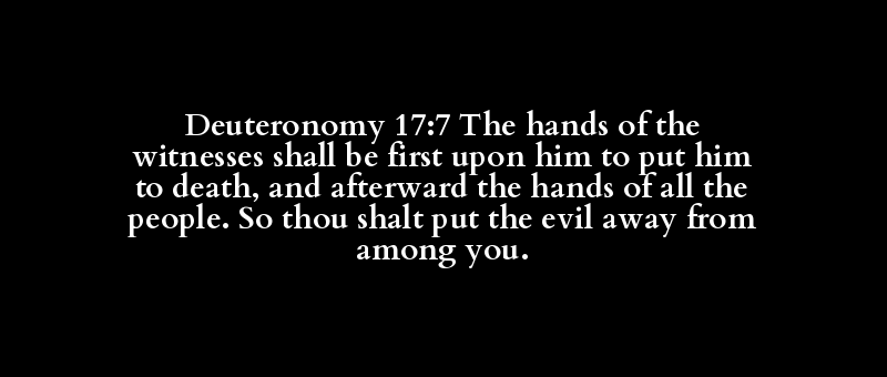Deuteronomy 17:7 The hands of the witnesses shall be first upon him to put him to death, and afterward the hands of all the people. So thou shalt put the evil away from among you.