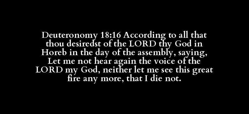 Deuteronomy 18:16 According to all that thou desiredst of the LORD thy God in Horeb in the day of the assembly, saying, Let me not hear again the voice of the LORD my God, neither let me see this great fire any more, that I die not.