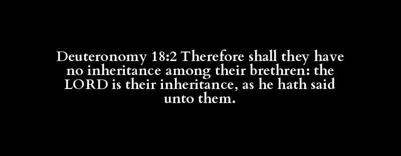 Deuteronomy 18:2 Therefore shall they have no inheritance among their brethren: the LORD is their inheritance, as he hath said unto them.