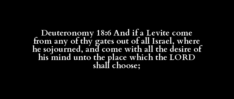 Deuteronomy 18:6 And if a Levite come from any of thy gates out of all Israel, where he sojourned, and come with all the desire of his mind unto the place which the LORD shall choose;