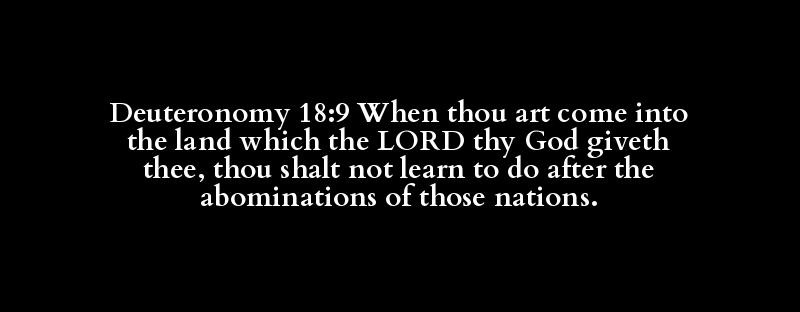 Deuteronomy 18:9 When thou art come into the land which the LORD thy God giveth thee, thou shalt not learn to do after the abominations of those nations.