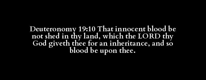 Deuteronomy 19:10 That innocent blood be not shed in thy land, which the LORD thy God giveth thee for an inheritance, and so blood be upon thee.