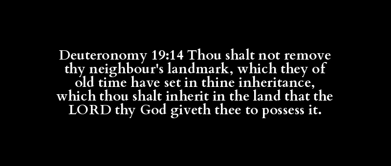 Deuteronomy 19:14 Thou shalt not remove thy neighbour's landmark, which they of old time have set in thine inheritance, which thou shalt inherit in the land that the LORD thy God giveth thee to possess it.
