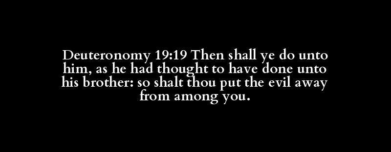 Deuteronomy 19:19 Then shall ye do unto him, as he had thought to have done unto his brother: so shalt thou put the evil away from among you.