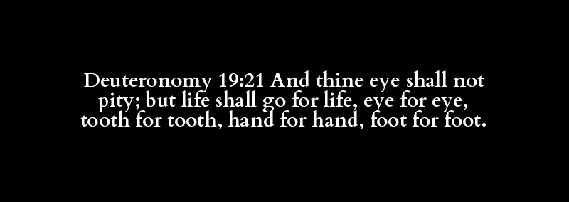 Deuteronomy 19:21 And thine eye shall not pity; but life shall go for life, eye for eye, tooth for tooth, hand for hand, foot for foot.