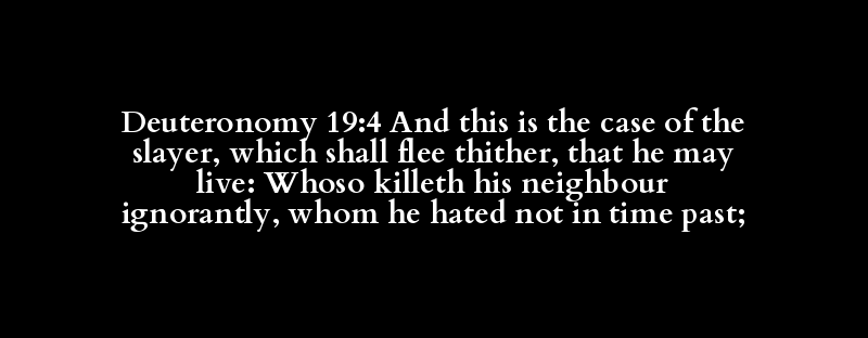 Deuteronomy 19:4 And this is the case of the slayer, which shall flee thither, that he may live: Whoso killeth his neighbour ignorantly, whom he hated not in time past;