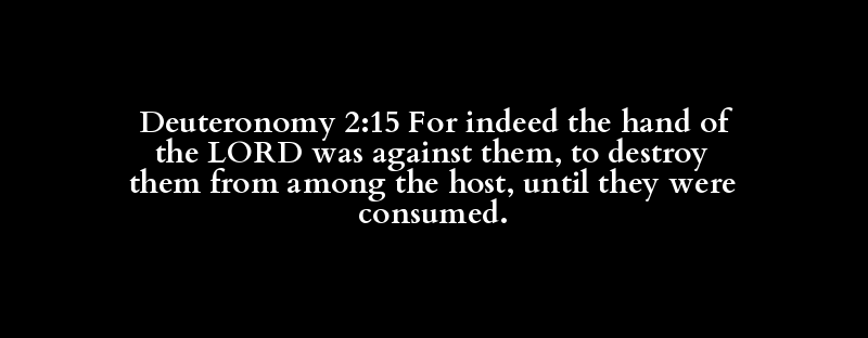 Deuteronomy 2:15 For indeed the hand of the LORD was against them, to destroy them from among the host, until they were consumed.