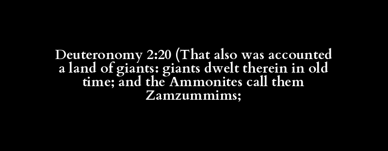 Deuteronomy 2:20 (That also was accounted a land of giants: giants dwelt therein in old time; and the Ammonites call them Zamzummims;