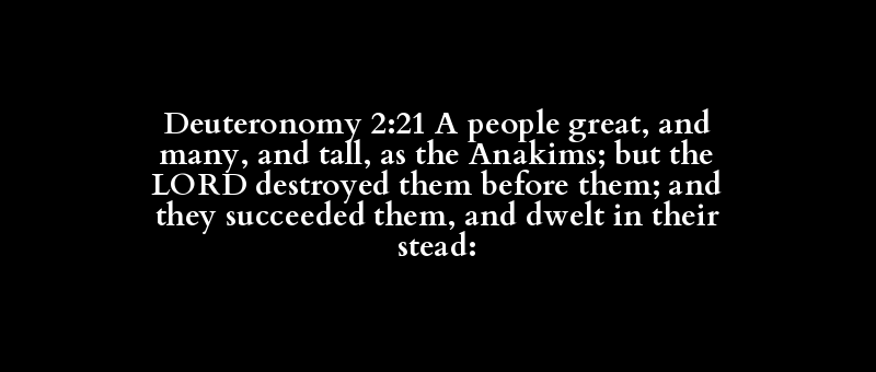 Deuteronomy 2:21 A people great, and many, and tall, as the Anakims; but the LORD destroyed them before them; and they succeeded them, and dwelt in their stead: