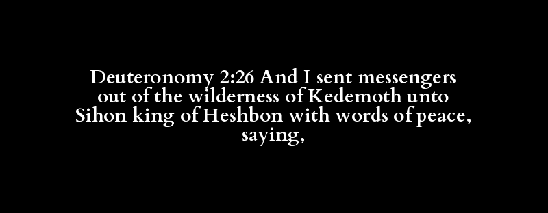 Deuteronomy 2:26 And I sent messengers out of the wilderness of Kedemoth unto Sihon king of Heshbon with words of peace, saying,