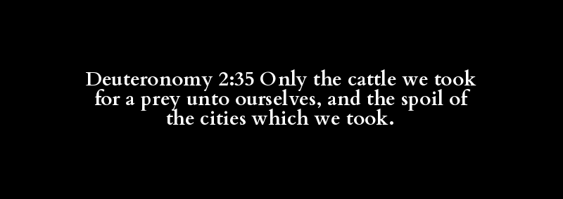 Deuteronomy 2:35 Only the cattle we took for a prey unto ourselves, and the spoil of the cities which we took.