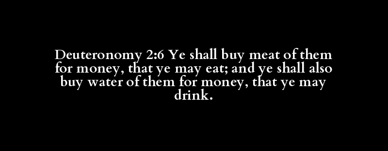 Deuteronomy 2:6 Ye shall buy meat of them for money, that ye may eat; and ye shall also buy water of them for money, that ye may drink.