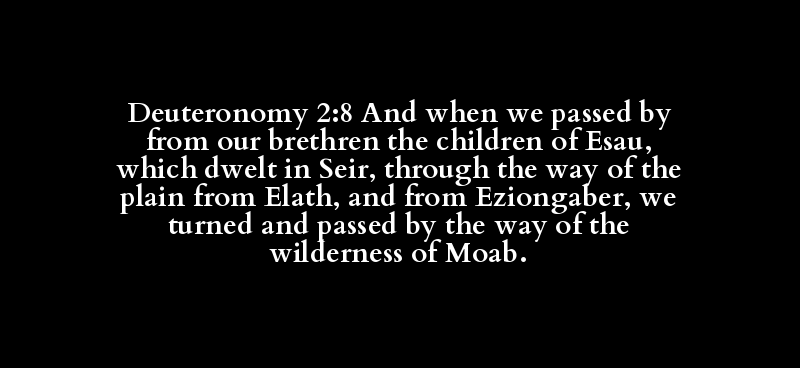 Deuteronomy 2:8 And when we passed by from our brethren the children of Esau, which dwelt in Seir, through the way of the plain from Elath, and from Eziongaber, we turned and passed by the way of the wilderness of Moab.