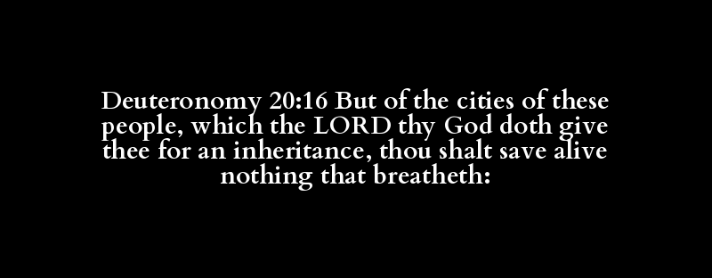 Deuteronomy 20:16 But of the cities of these people, which the LORD thy God doth give thee for an inheritance, thou shalt save alive nothing that breatheth: