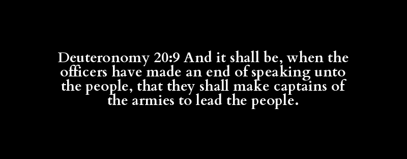 Deuteronomy 20:9 And it shall be, when the officers have made an end of speaking unto the people, that they shall make captains of the armies to lead the people.