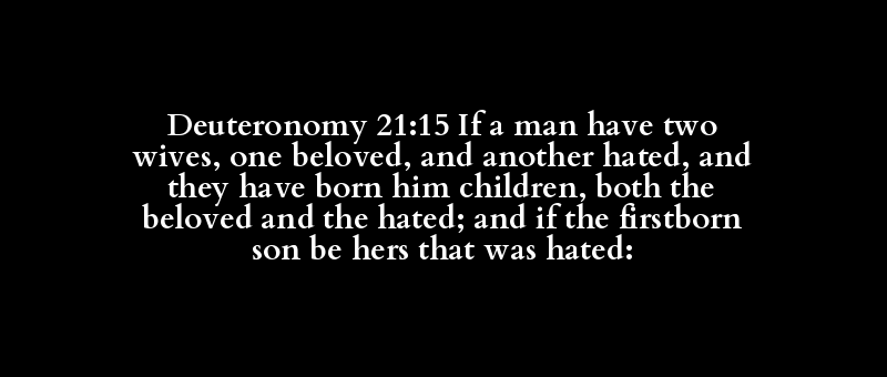 Deuteronomy 21:15 If a man have two wives, one beloved, and another hated, and they have born him children, both the beloved and the hated; and if the firstborn son be hers that was hated: