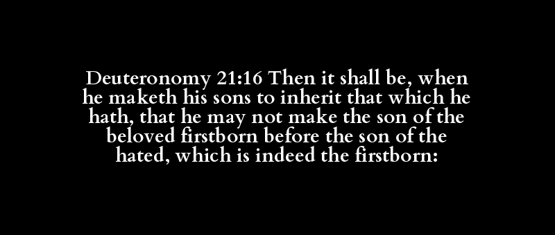 Deuteronomy 21:16 Then it shall be, when he maketh his sons to inherit that which he hath, that he may not make the son of the beloved firstborn before the son of the hated, which is indeed the firstborn: