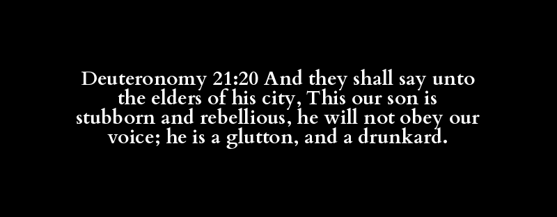 Deuteronomy 21:20 And they shall say unto the elders of his city, This our son is stubborn and rebellious, he will not obey our voice; he is a glutton, and a drunkard.