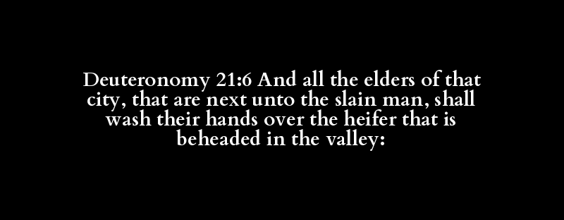 Deuteronomy 21:6 And all the elders of that city, that are next unto the slain man, shall wash their hands over the heifer that is beheaded in the valley: