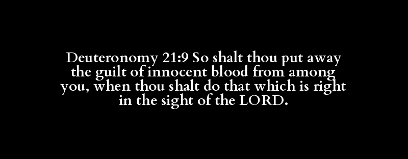 Deuteronomy 21:9 So shalt thou put away the guilt of innocent blood from among you, when thou shalt do that which is right in the sight of the LORD.