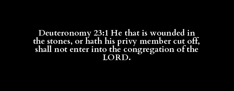 Deuteronomy 23:1 He that is wounded in the stones, or hath his privy member cut off, shall not enter into the congregation of the LORD.