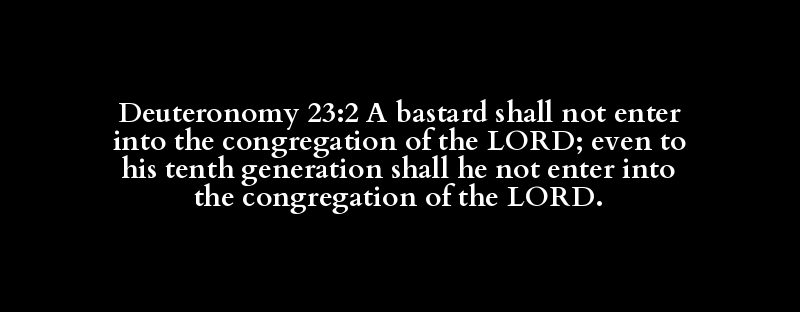Deuteronomy 23:2 A bastard shall not enter into the congregation of the LORD; even to his tenth generation shall he not enter into the congregation of the LORD.