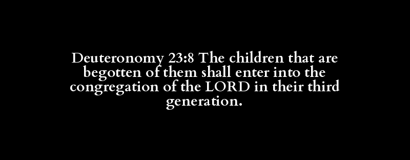 Deuteronomy 23:8 The children that are begotten of them shall enter into the congregation of the LORD in their third generation.