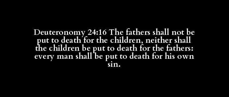 Deuteronomy 24:16 The fathers shall not be put to death for the children, neither shall the children be put to death for the fathers: every man shall be put to death for his own sin.