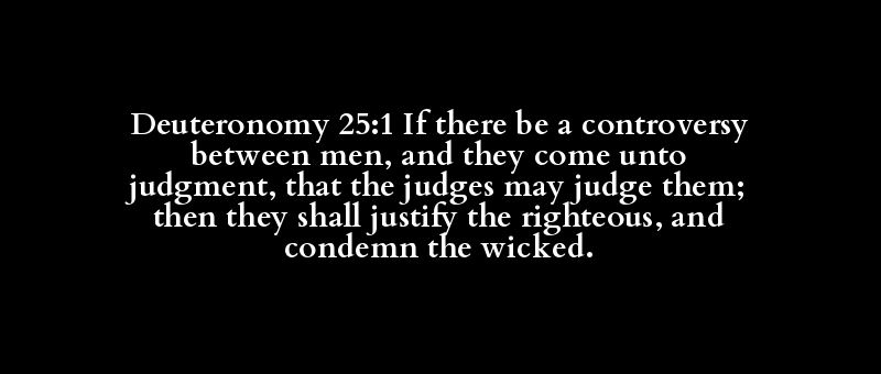 Deuteronomy 25:1 If there be a controversy between men, and they come unto judgment, that the judges may judge them; then they shall justify the righteous, and condemn the wicked.