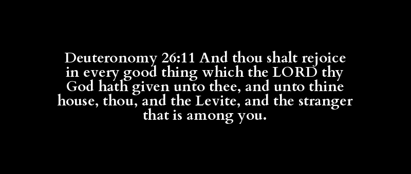 Deuteronomy 26:11 And thou shalt rejoice in every good thing which the LORD thy God hath given unto thee, and unto thine house, thou, and the Levite, and the stranger that is among you.