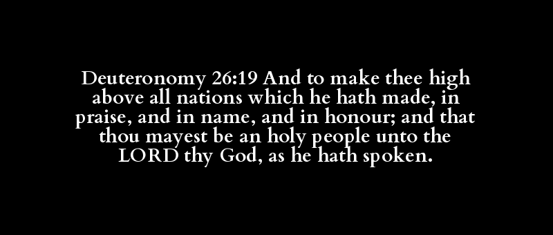 Deuteronomy 26:19 And to make thee high above all nations which he hath made, in praise, and in name, and in honour; and that thou mayest be an holy people unto the LORD thy God, as he hath spoken.