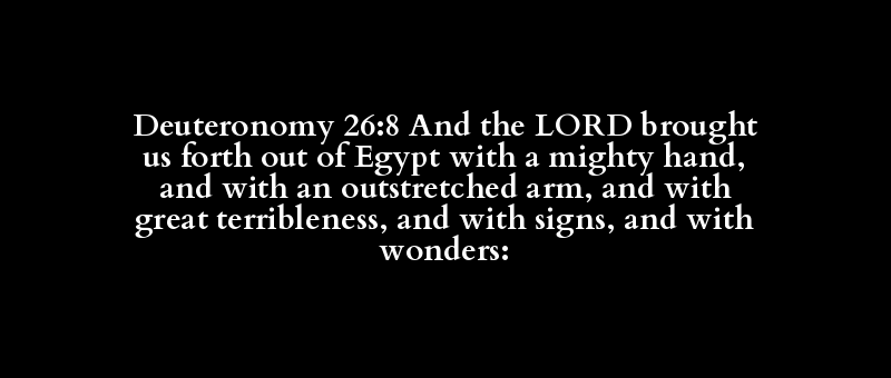 Deuteronomy 26:8 And the LORD brought us forth out of Egypt with a mighty hand, and with an outstretched arm, and with great terribleness, and with signs, and with wonders:
