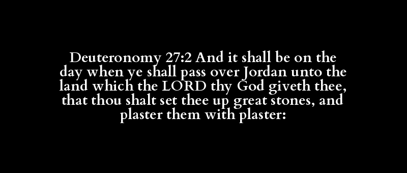 Deuteronomy 27:2 And it shall be on the day when ye shall pass over Jordan unto the land which the LORD thy God giveth thee, that thou shalt set thee up great stones, and plaster them with plaster: