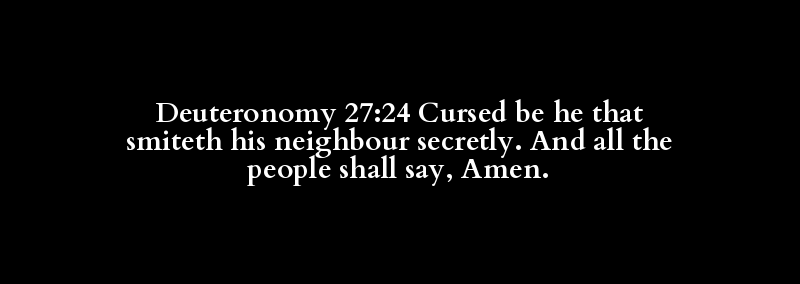 Deuteronomy 27:24 Cursed be he that smiteth his neighbour secretly. And all the people shall say, Amen.