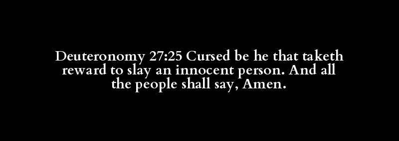 Deuteronomy 27:25 Cursed be he that taketh reward to slay an innocent person. And all the people shall say, Amen.