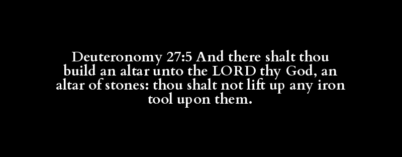 Deuteronomy 27:5 And there shalt thou build an altar unto the LORD thy God, an altar of stones: thou shalt not lift up any iron tool upon them.