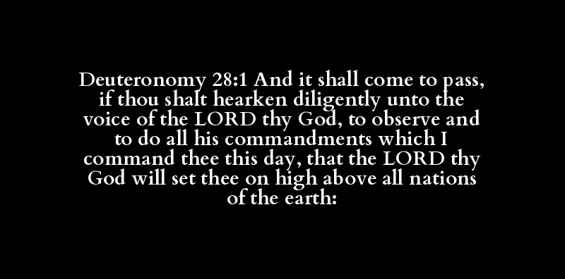 Deuteronomy 28:1 And it shall come to pass, if thou shalt hearken diligently unto the voice of the LORD thy God, to observe and to do all his commandments which I command thee this day, that the LORD thy God will set thee on high above all nations of the earth: